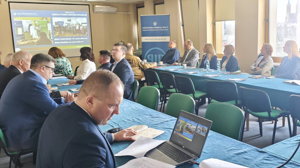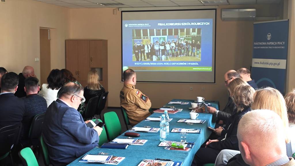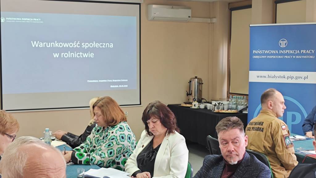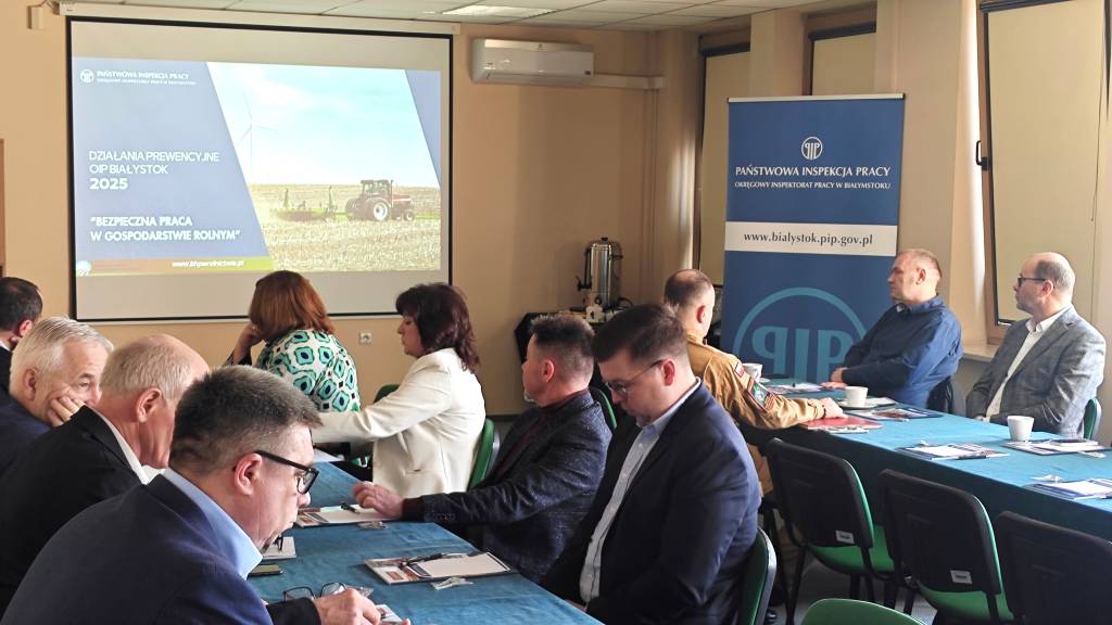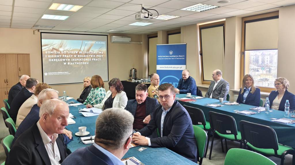 Dnia 5 marca 2026 roku w siedzibie Okręgowego Inspektoratu Pracy w Białymstoku odbyło się kolejne posiedzenie Komisji do spraw Bezpieczeństwa i Higieny Pracy w Rolnictwie przy Okręgowym Inspektorze Pracy w Białymstoku. Podstawowym celem działania Komisji jest ustalanie kierunków profilaktyki zawodowej w rolnictwie, w szczególności dotyczącej szkolenia, doradztwa i popularyzacji w zakresie ochrony pracy w rolnictwie na terenie województwa podlaskiego.